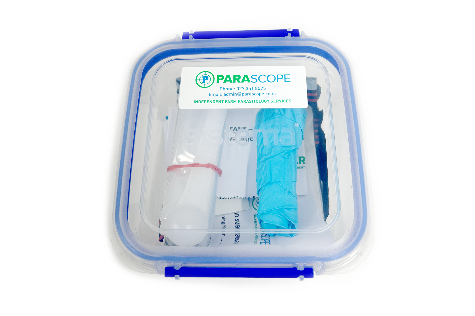- Pre-paid courier bag to return samples to parascope